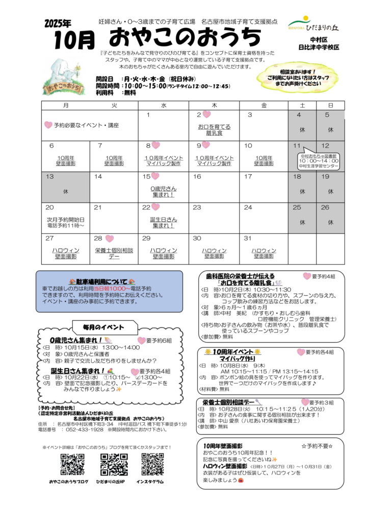 ☆おやこのおうち☆10月イベントカレンダー🍠