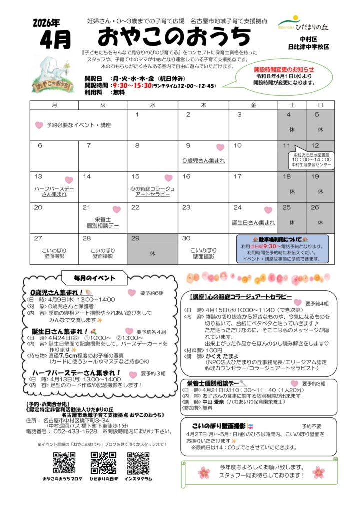 名古屋市地域子育て支援拠点おやこのおうちです😄
