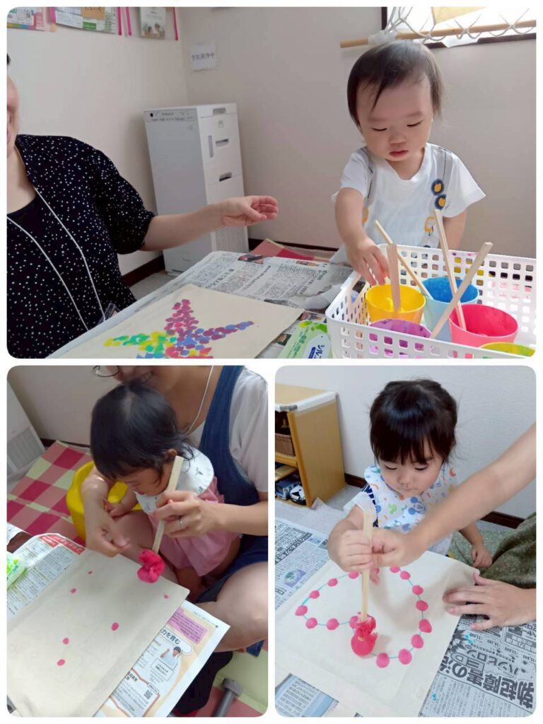 自分でお絵描きしたり、ポンポン絵具を使って楽しんでやってくれましたね❣️
