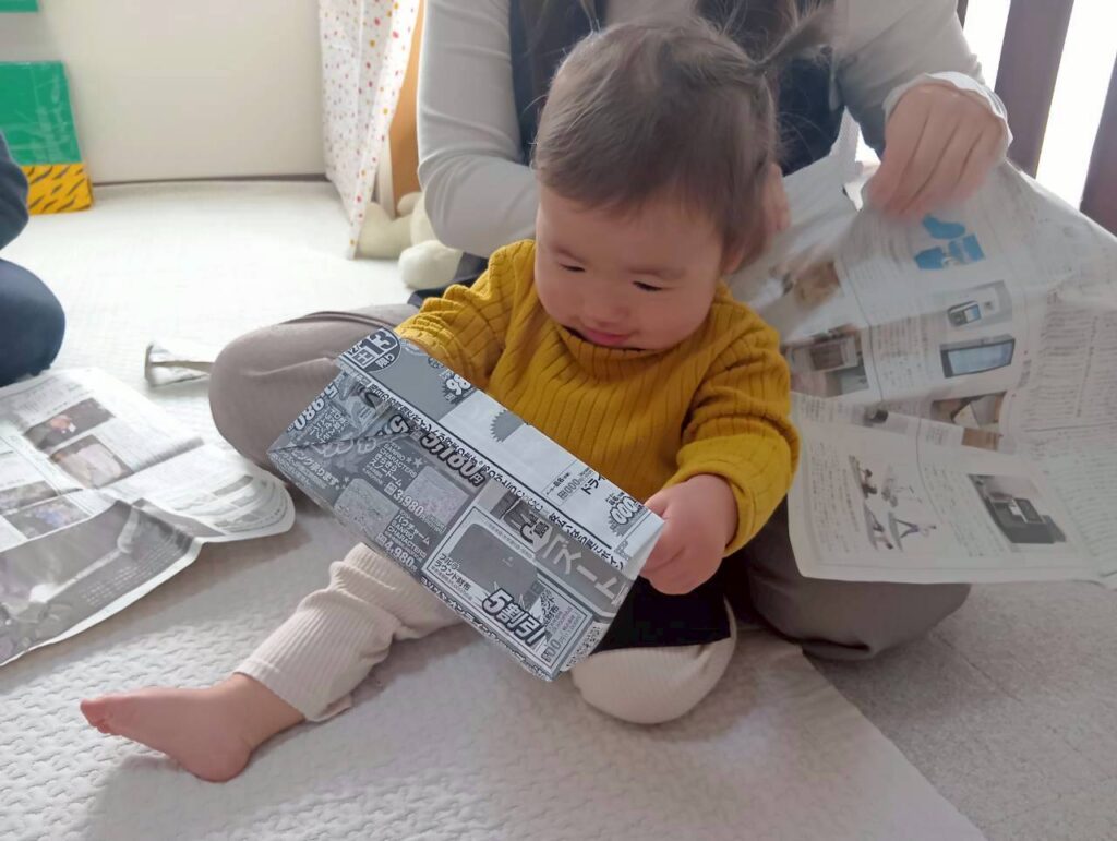 新聞紙をくるくる丸めて節分の豆を作り、新聞豆まきをしました👹