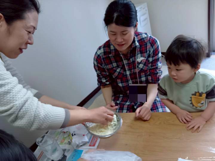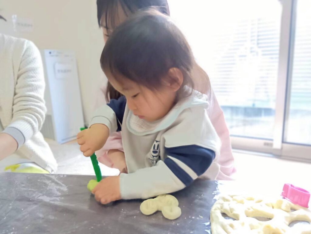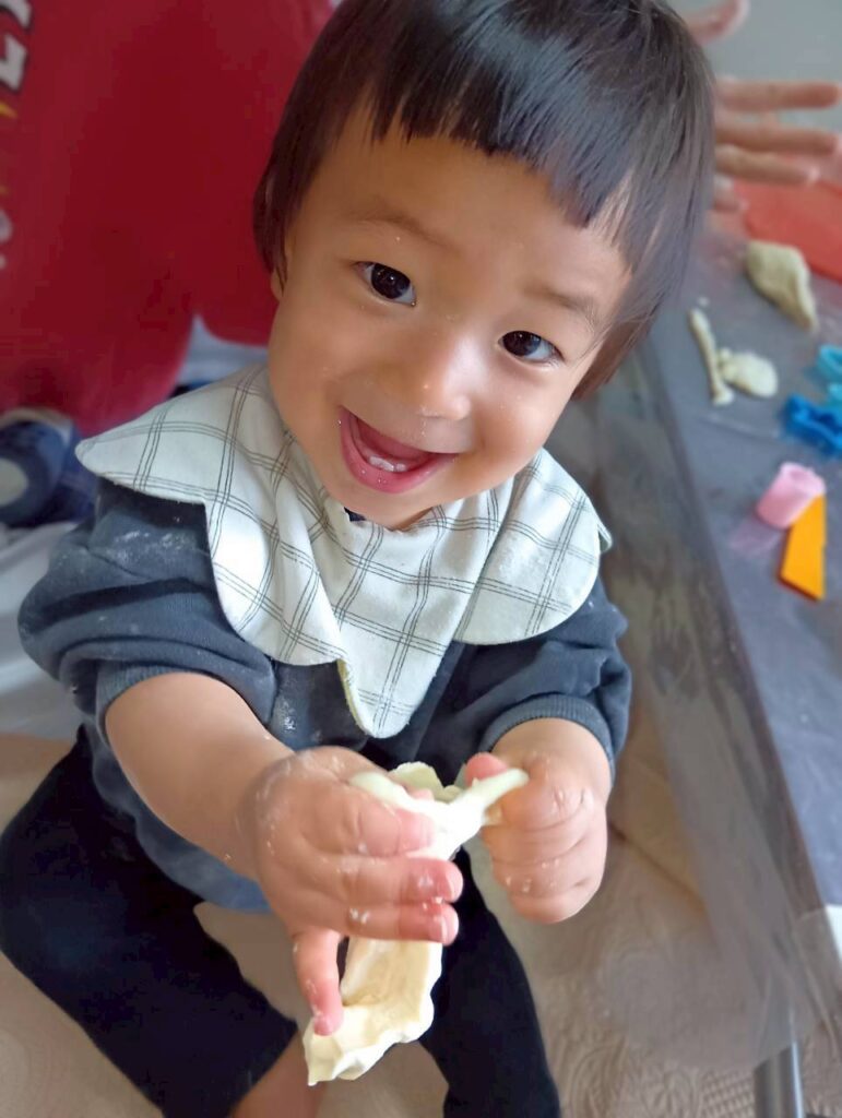 子ども達は、小麦粉粘土に興味津々でした☺️