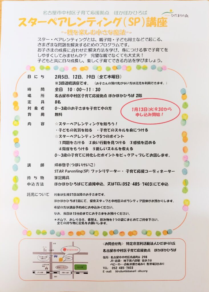 ♡ぽかぽかひろば♡ スターペアレンティング講座のお知らせ☆