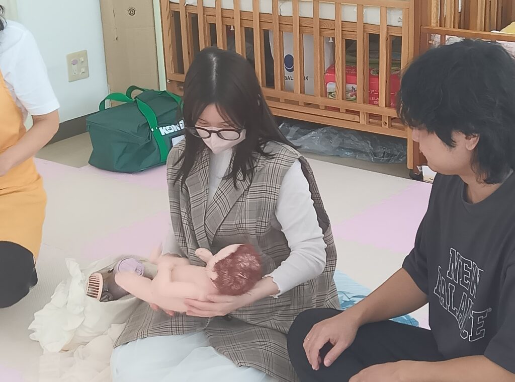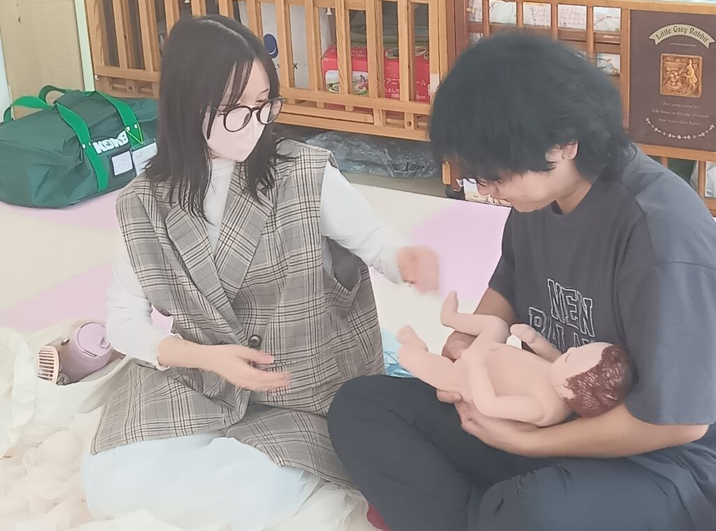 かわいい赤ちゃん人形で実際に今の週数の赤ちゃんの大きさを抱っこして確かめてもらったりしました。