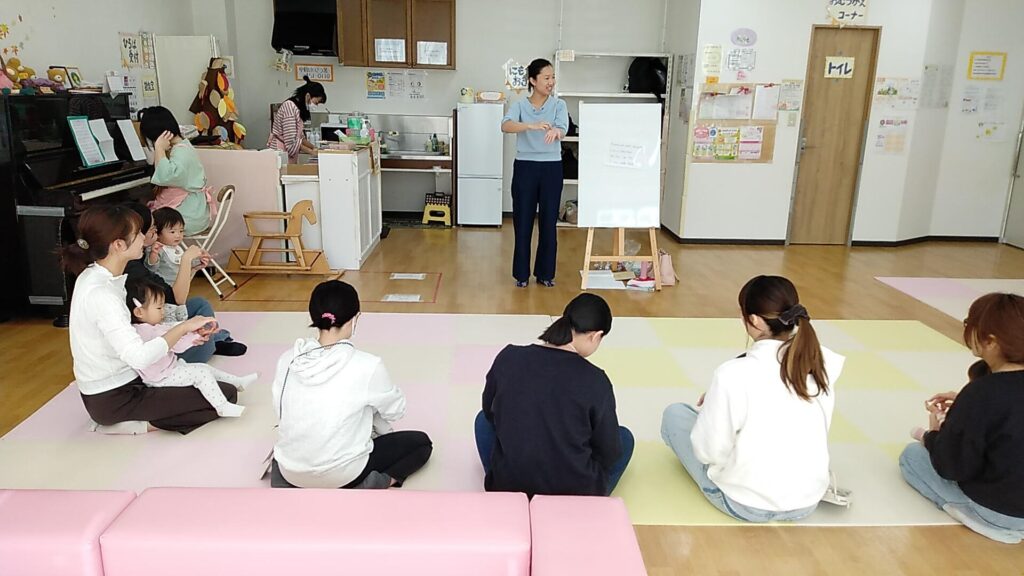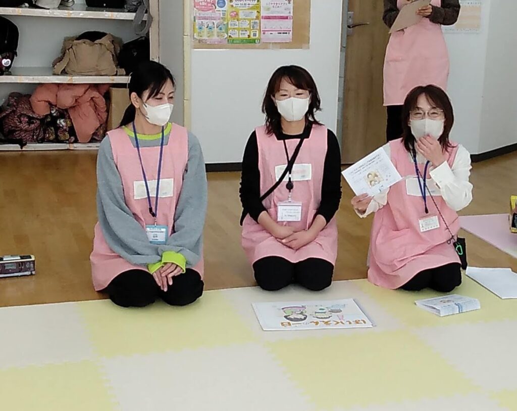 中村区のエリア支援保育園から保育士の先生3名来ていただき入所についてのお話や、成長についての相談などをしていただきました。