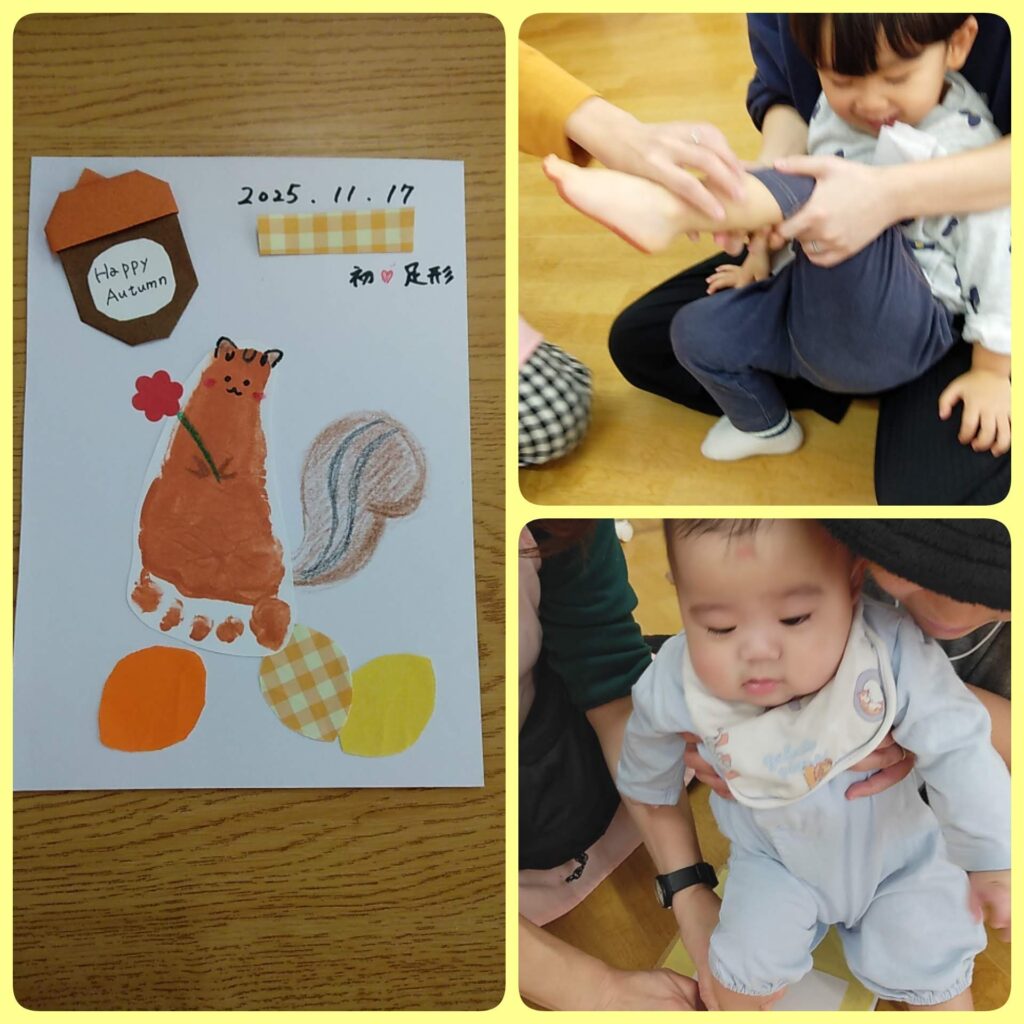 今月の製作は足形を使って、リスを作ってもらいました♪