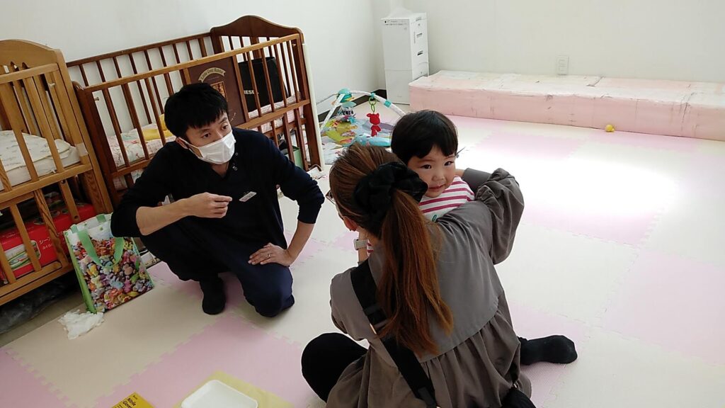 かすもりおしむら歯科の歯科医師の宮田将和先生に来ていただき、お口の中を見ていただいたり、お子さんのお口で気になることを個別でお話ししていただきました✨