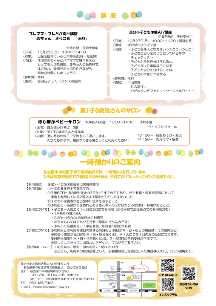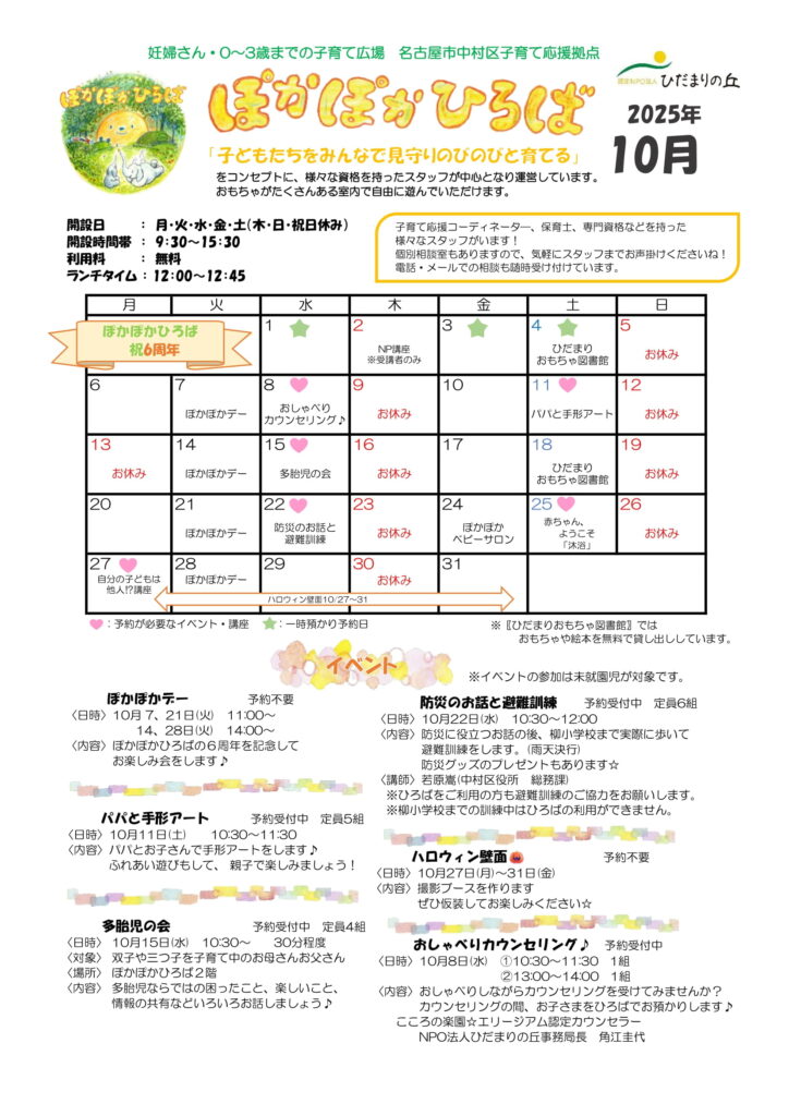 ♡ぽかぽかひろば♡ 2025年10月イベントカレンダー