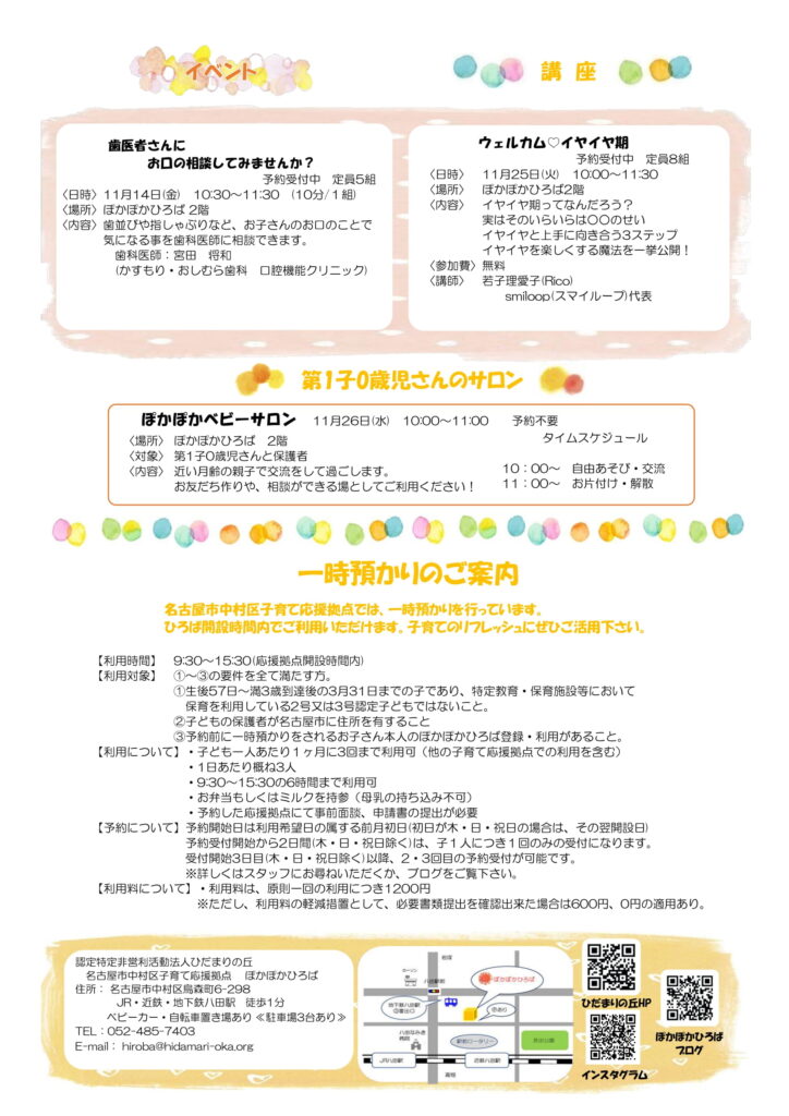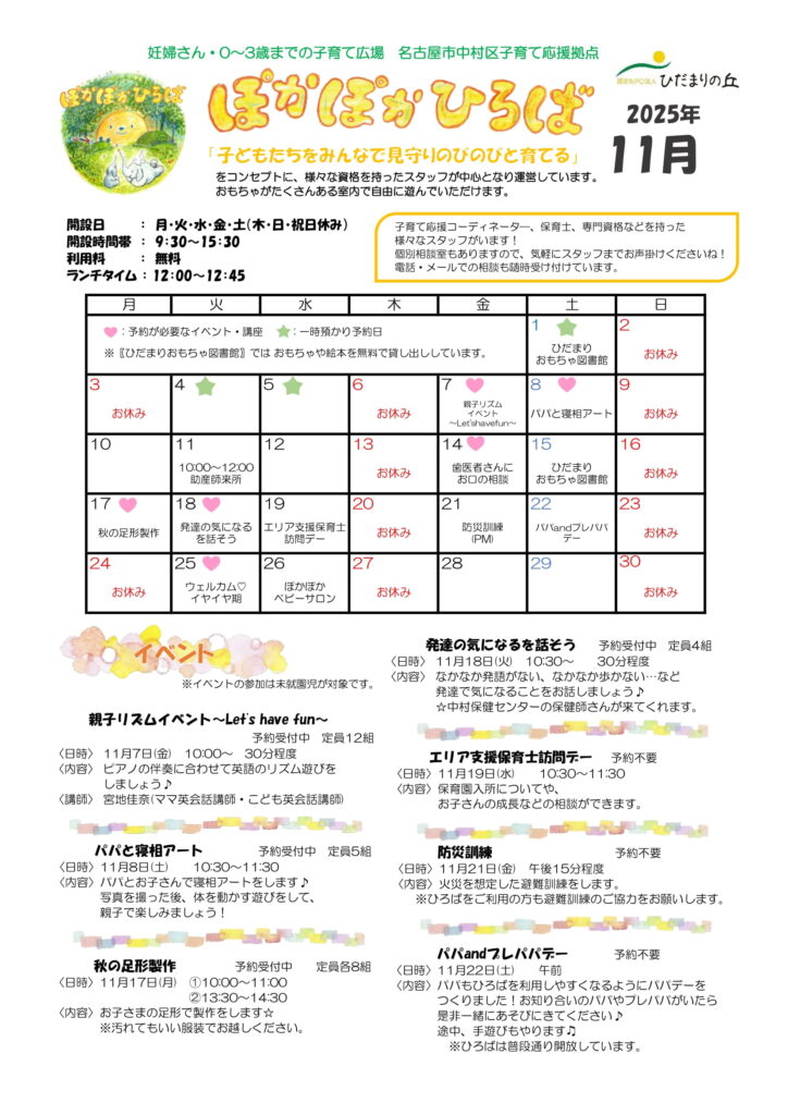 ♡ぽかぽかひろば♡ 2025年11月イベントカレンダー