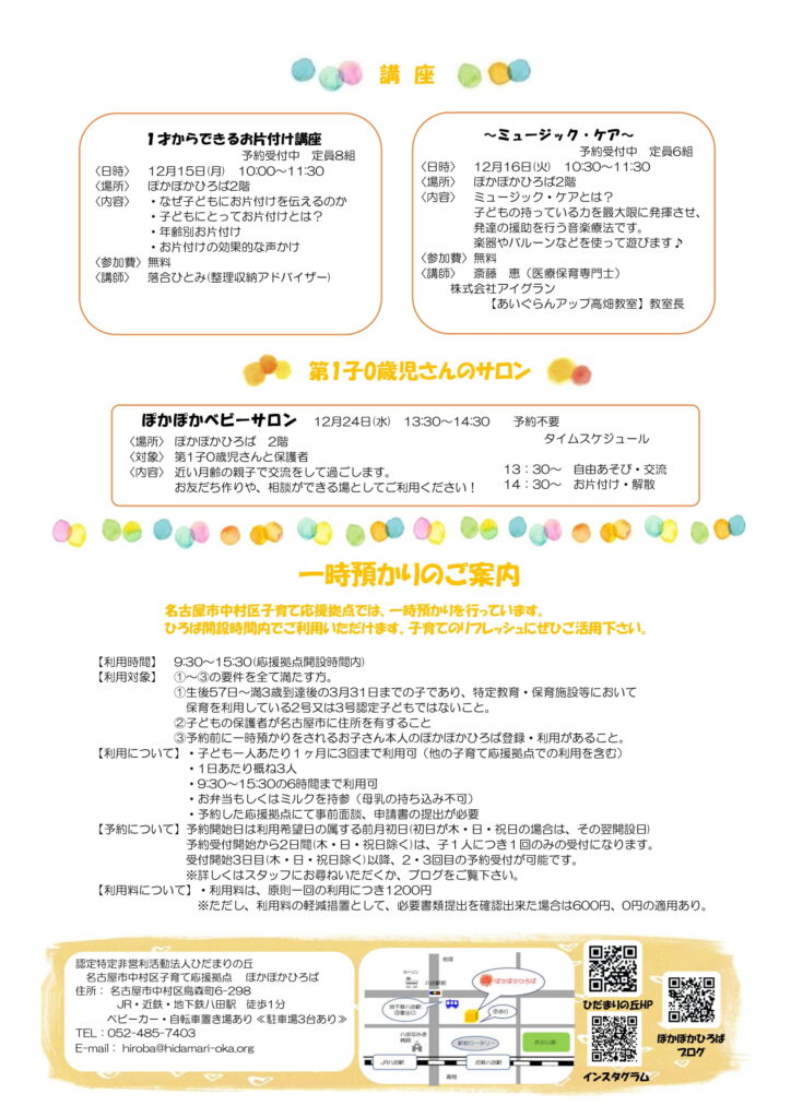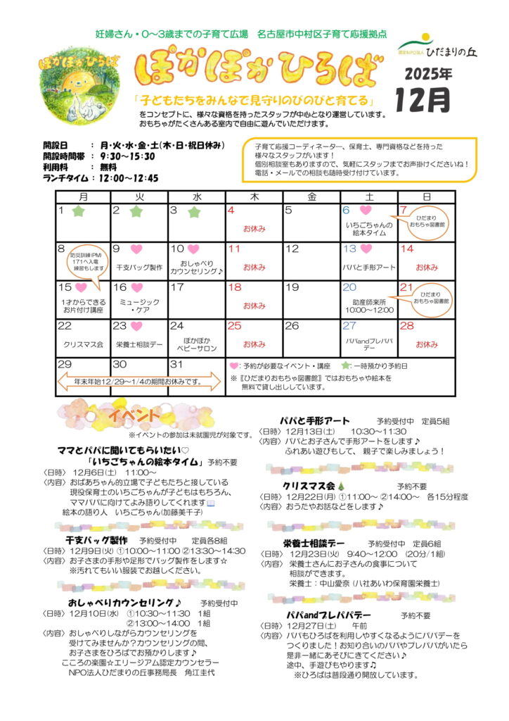 ♡ぽかぽかひろば♡ 2025年12月イベントカレンダー