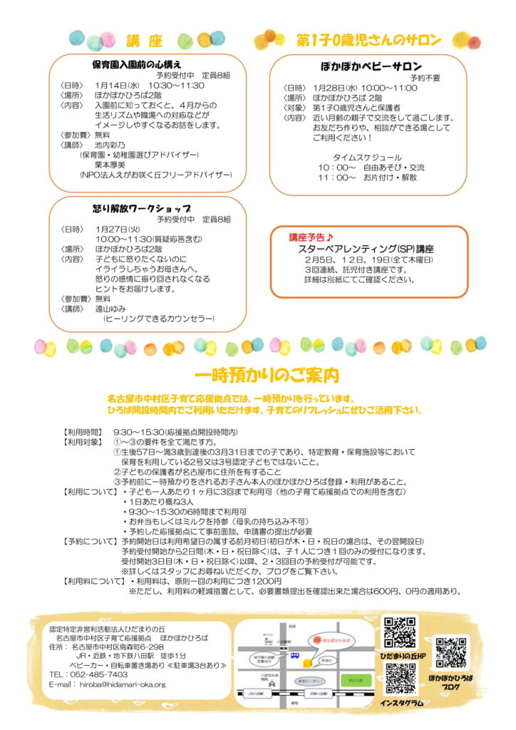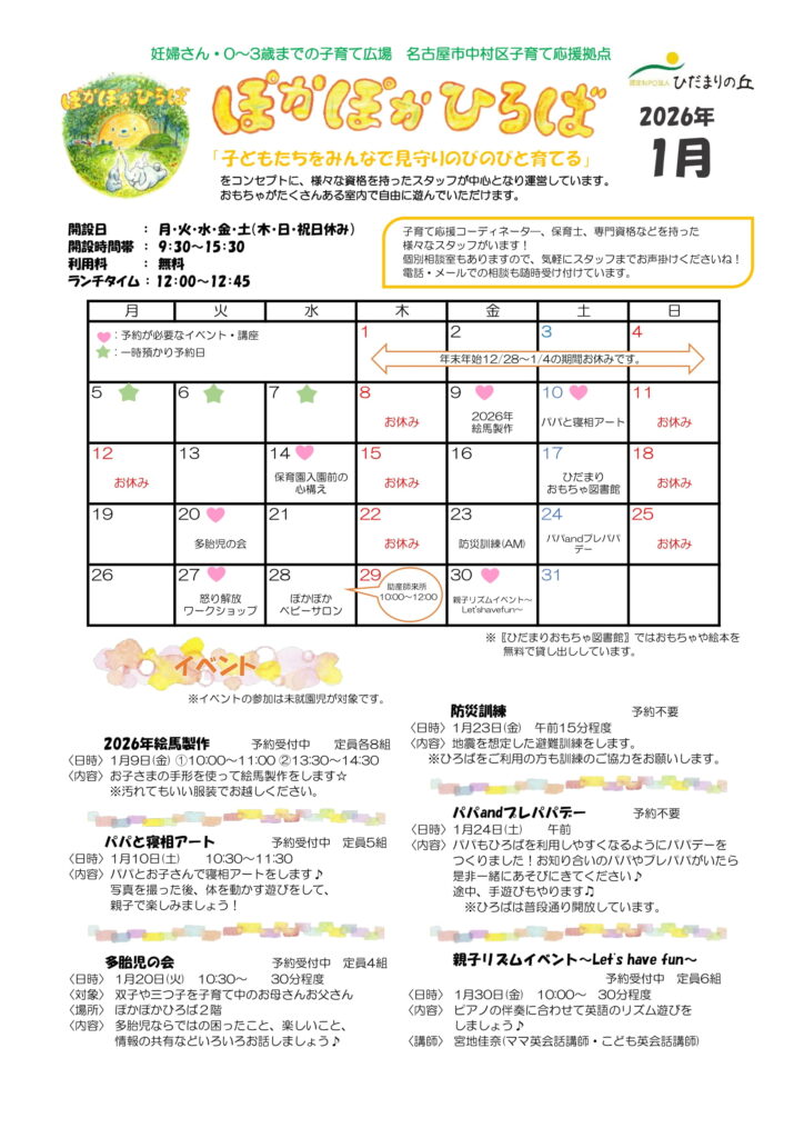 ♡ぽかぽかひろば♡ 2026年1月イベントカレンダー