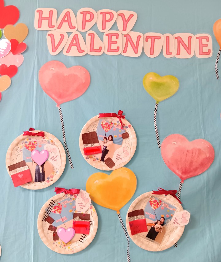 ハートいっぱいのバレンタインフォトブースでお写真を撮りその場でプリントして、今回は紙皿を使ったフォトフレームにしました♪