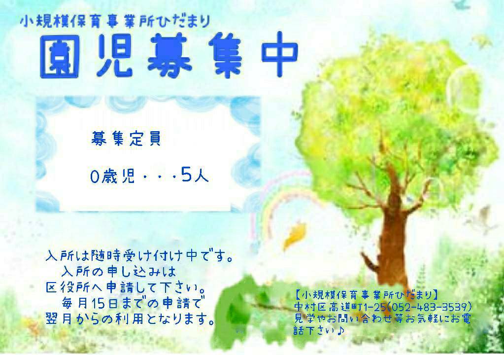 ❁ 園児募集のお知らせ❁:小規模保育事業所ひだまり