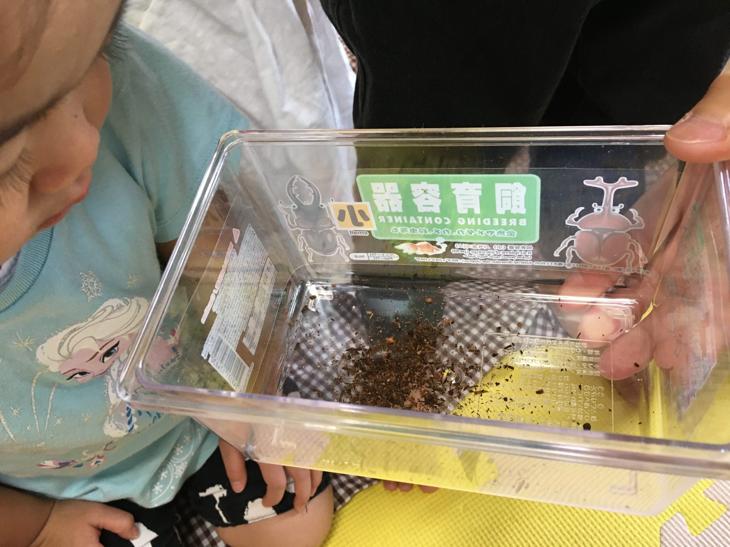 もう一つのケースの土を返すとこちらにはかぶと虫の卵がありました!!