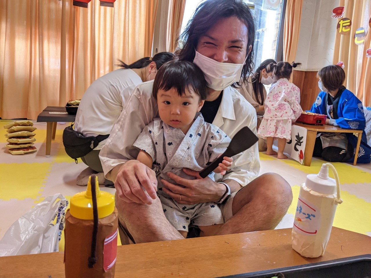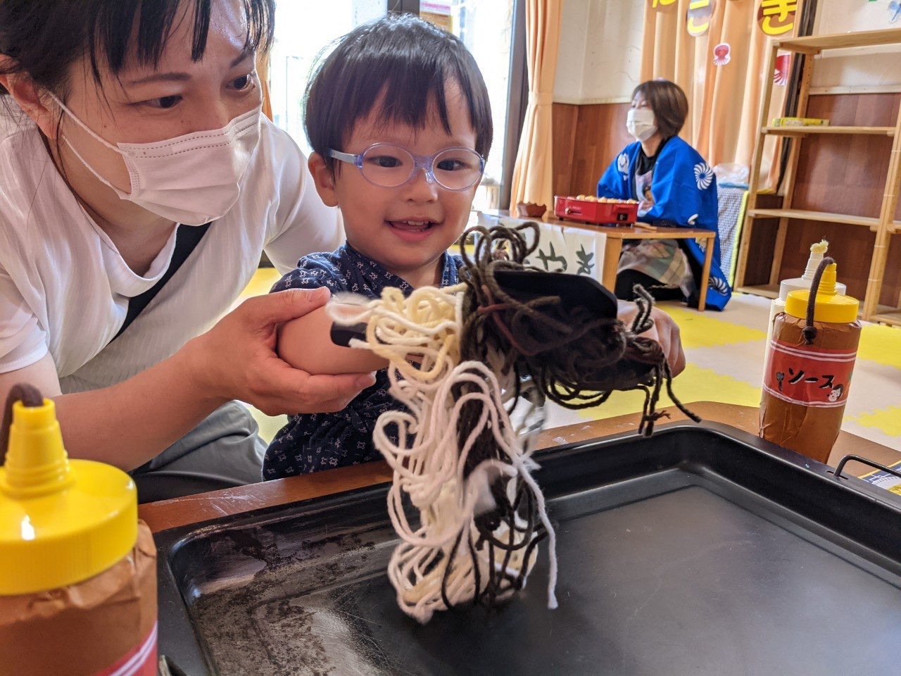 ひだまりがお祭りに大変身。焼きそばにたこ焼きにお好み焼きにかき氷に。美味しそうなお店が並びます❤️
