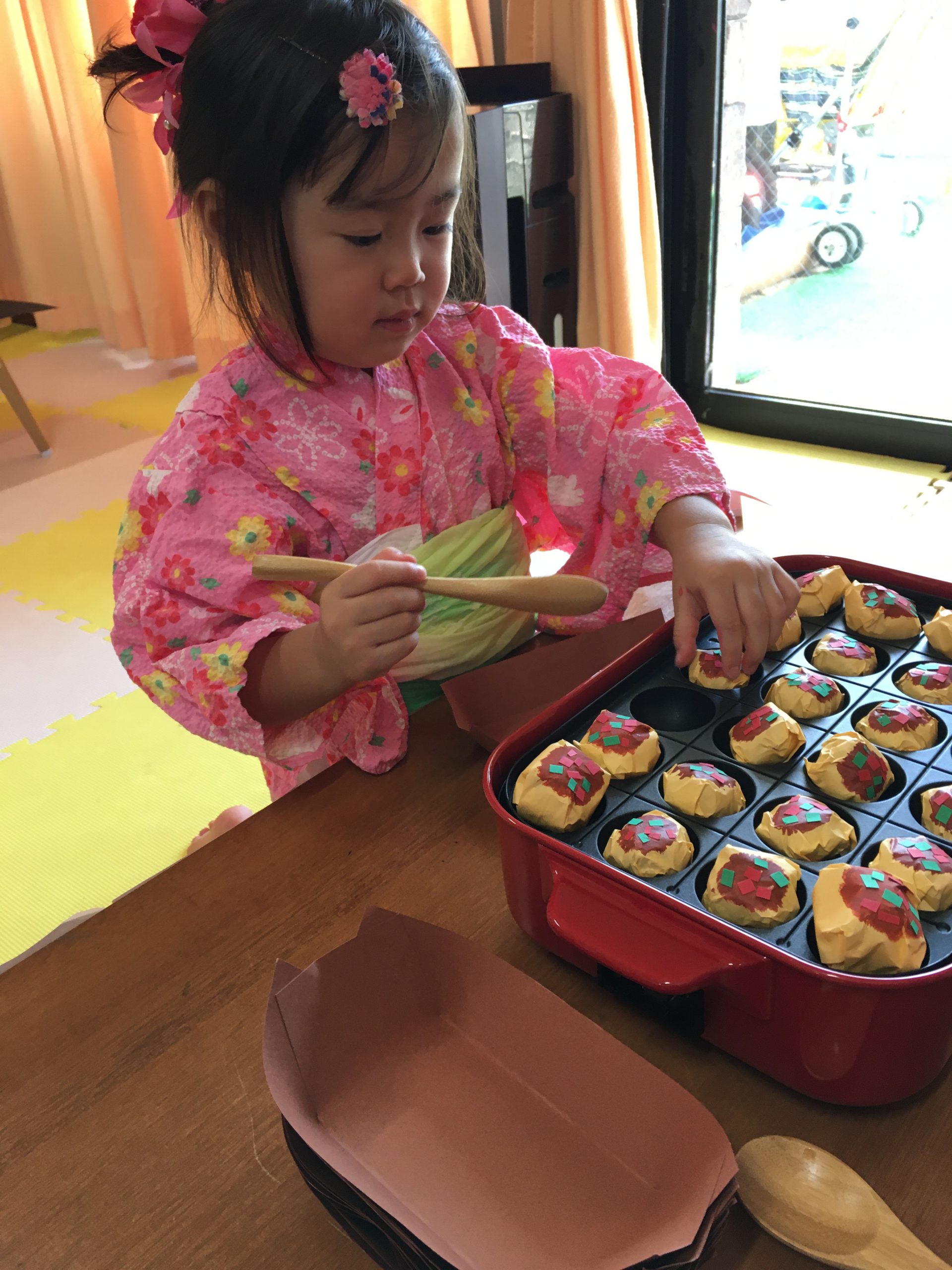 たこ焼きをトレーに乗せてね💕みんな真剣です!