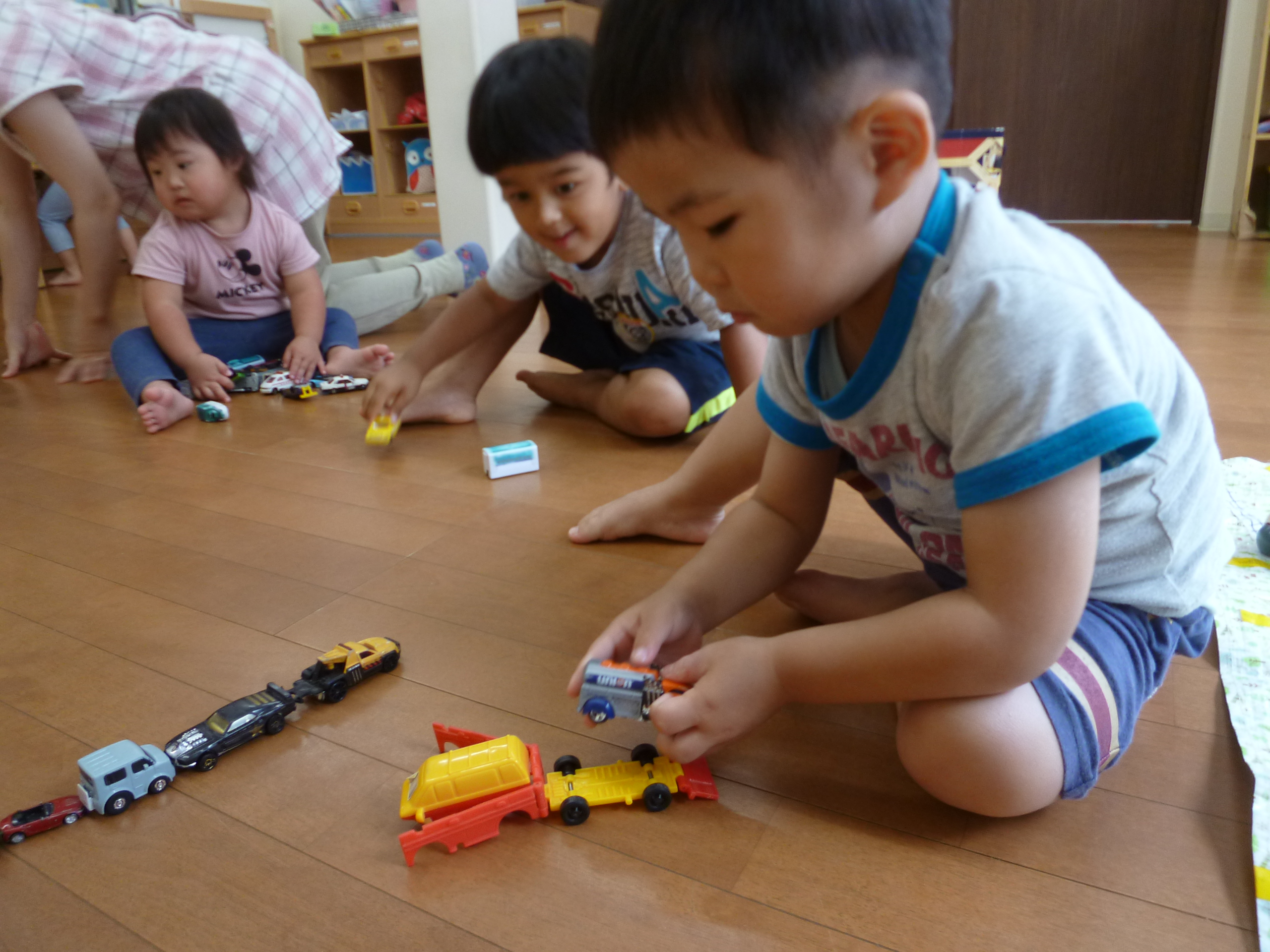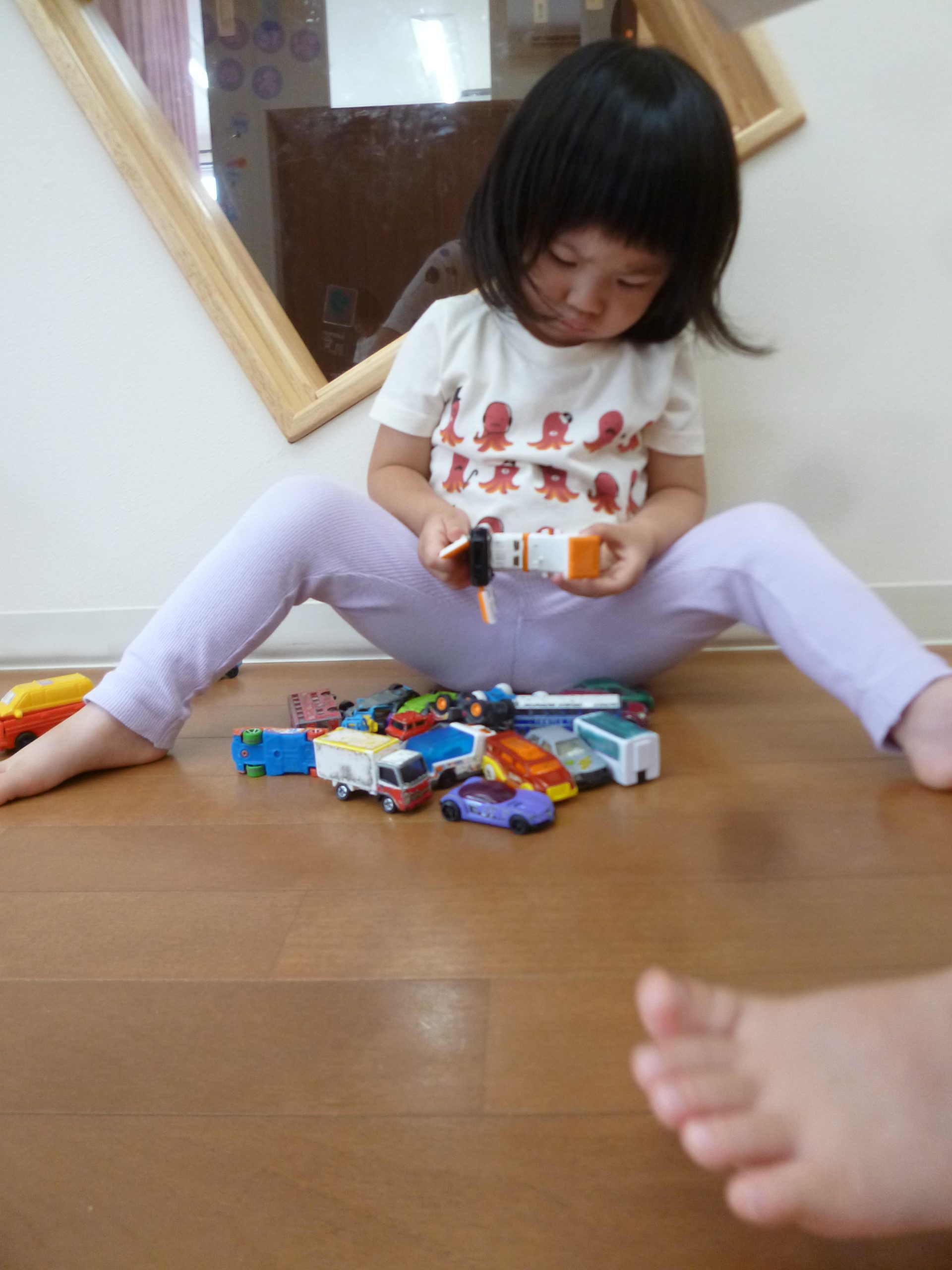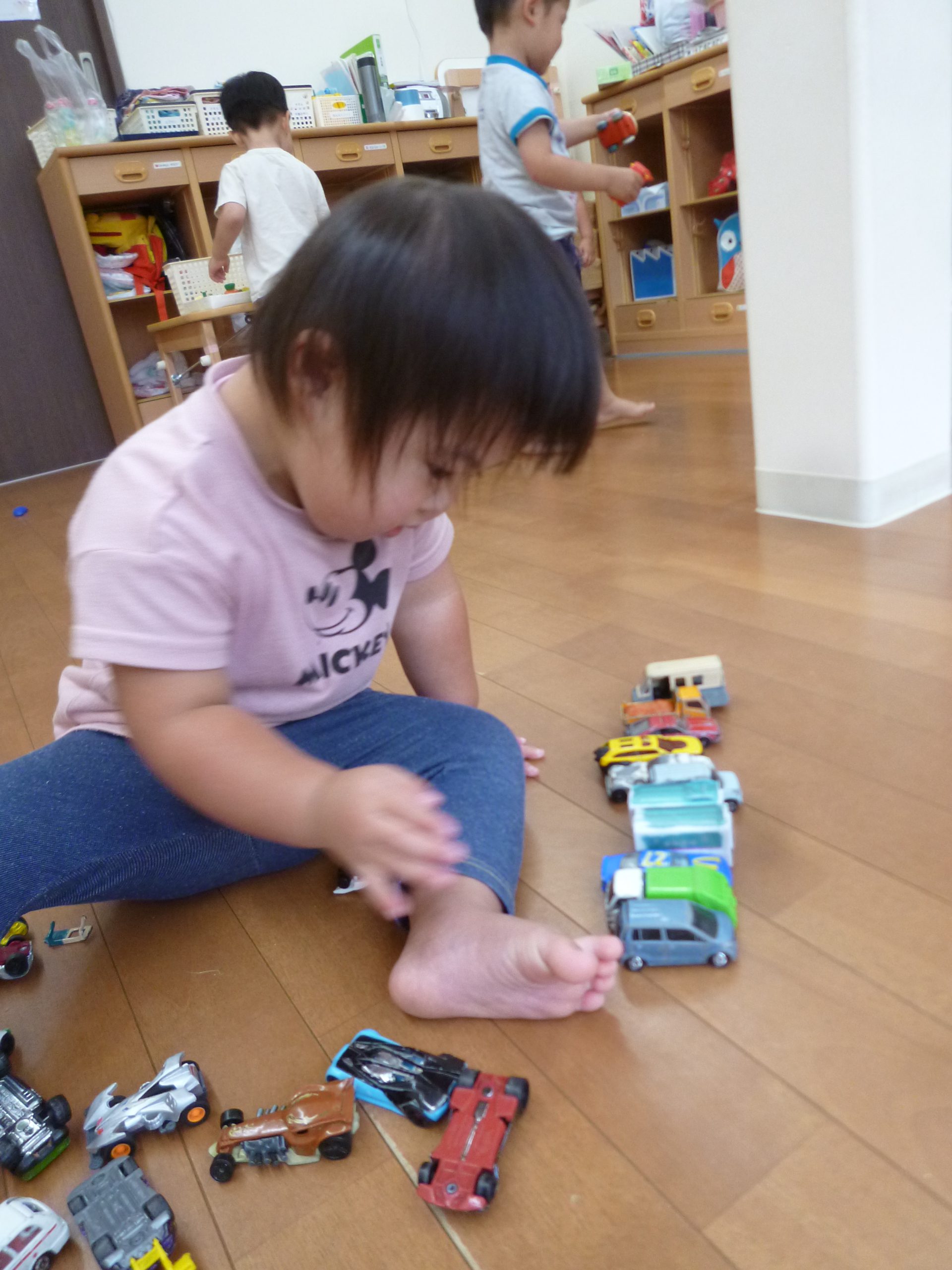 車のおもちゃを出すと並べてみたり、たくさん集めてみたり🚘