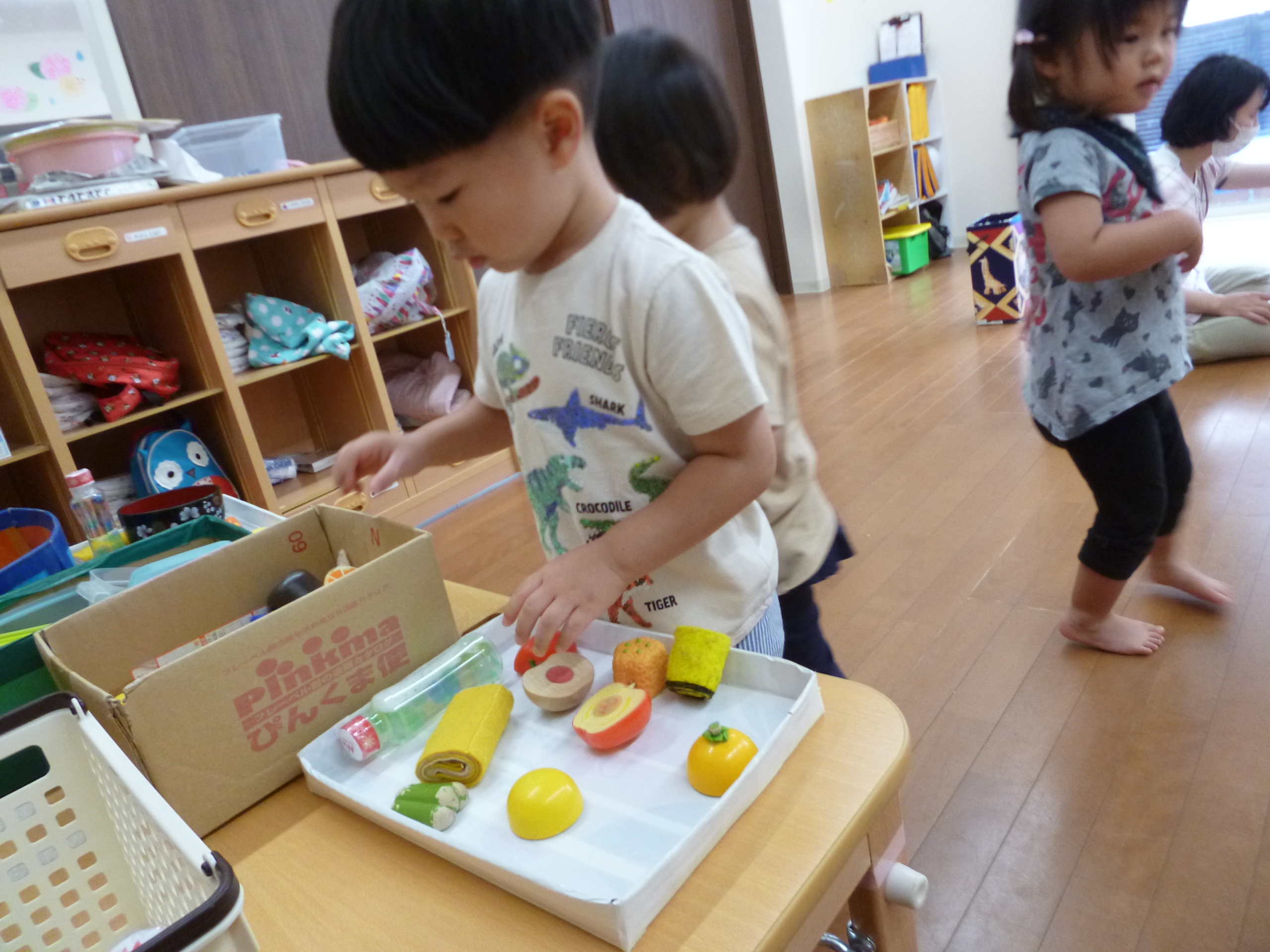 ↑お店屋さんごっこのように「ちょうだい」「いいよ」