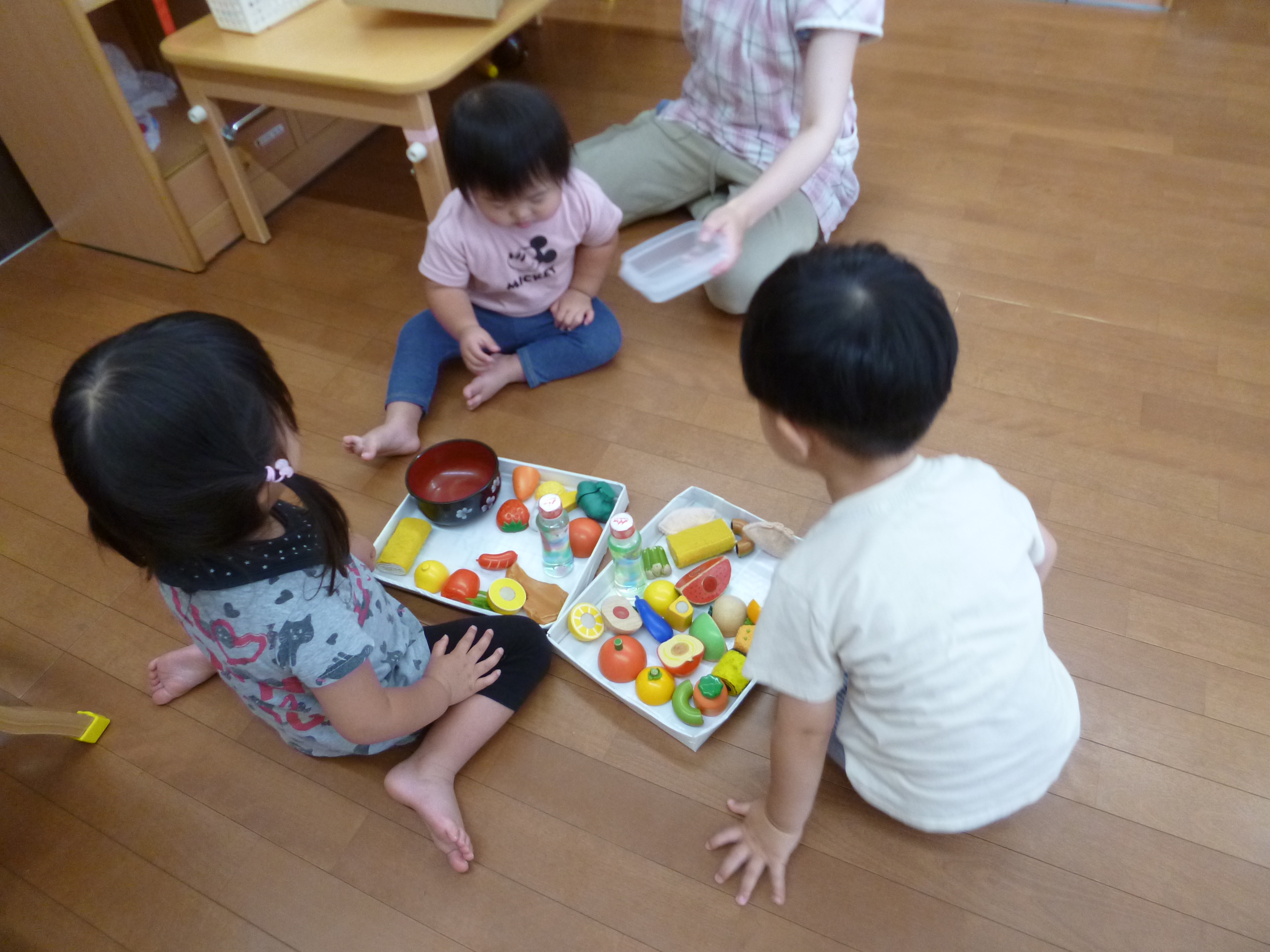「かして」「いいよ」とやりとりしたり、ごっこ遊びをしたり、