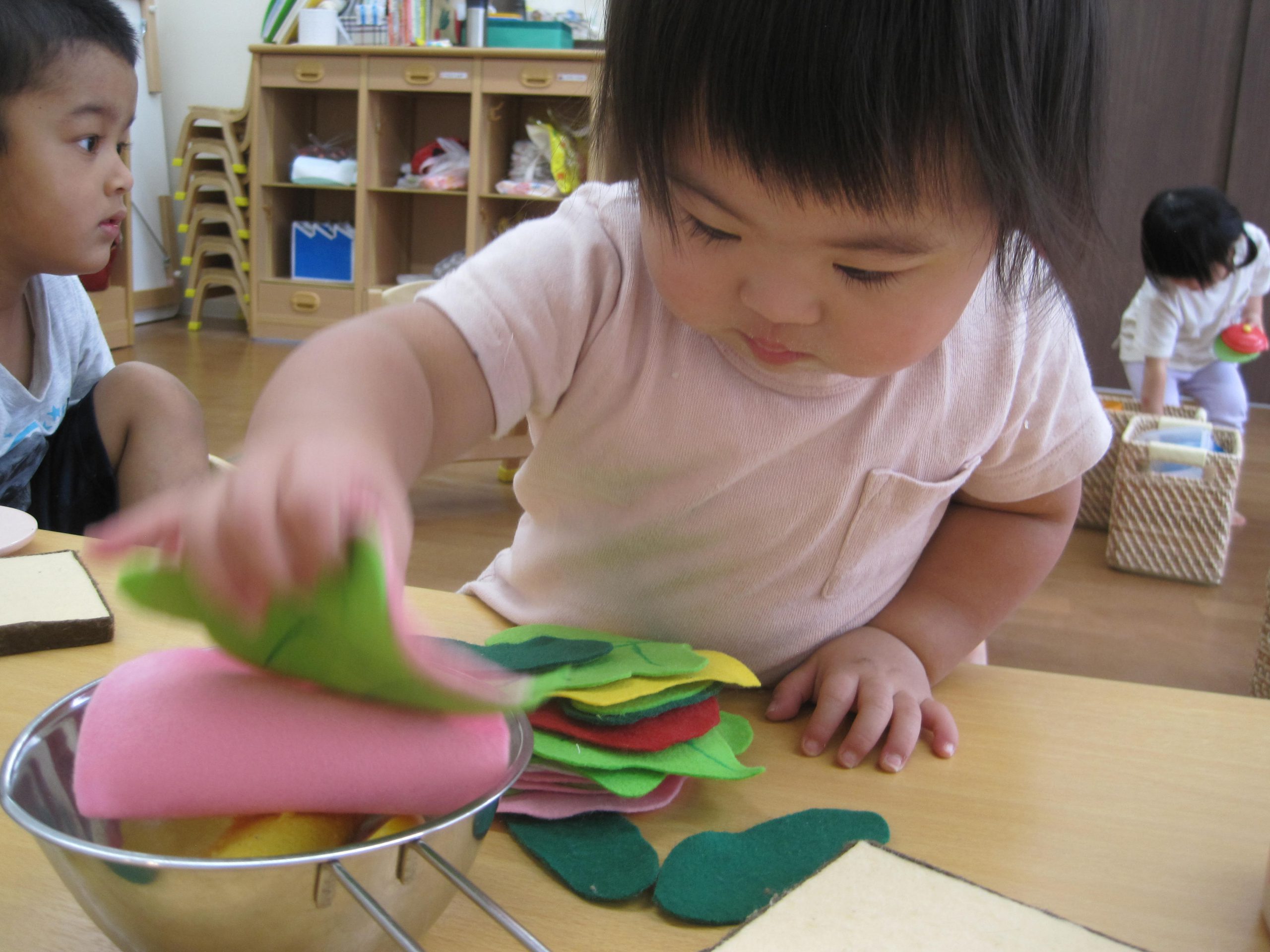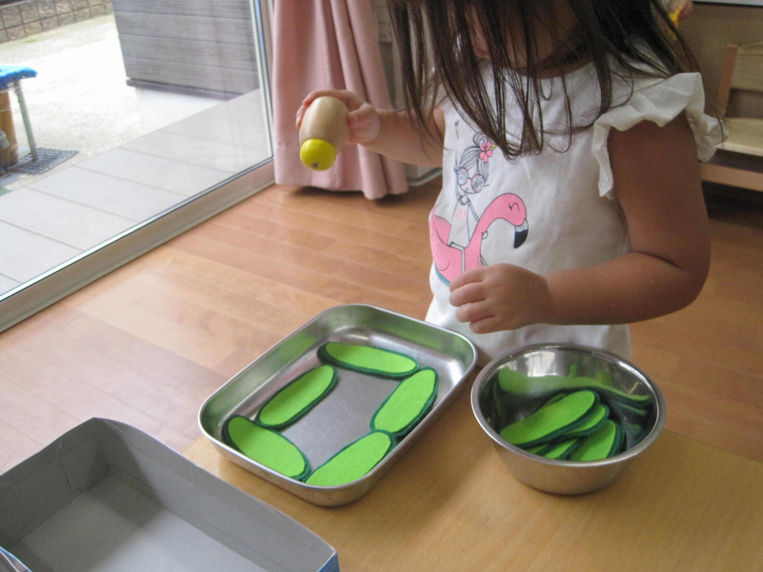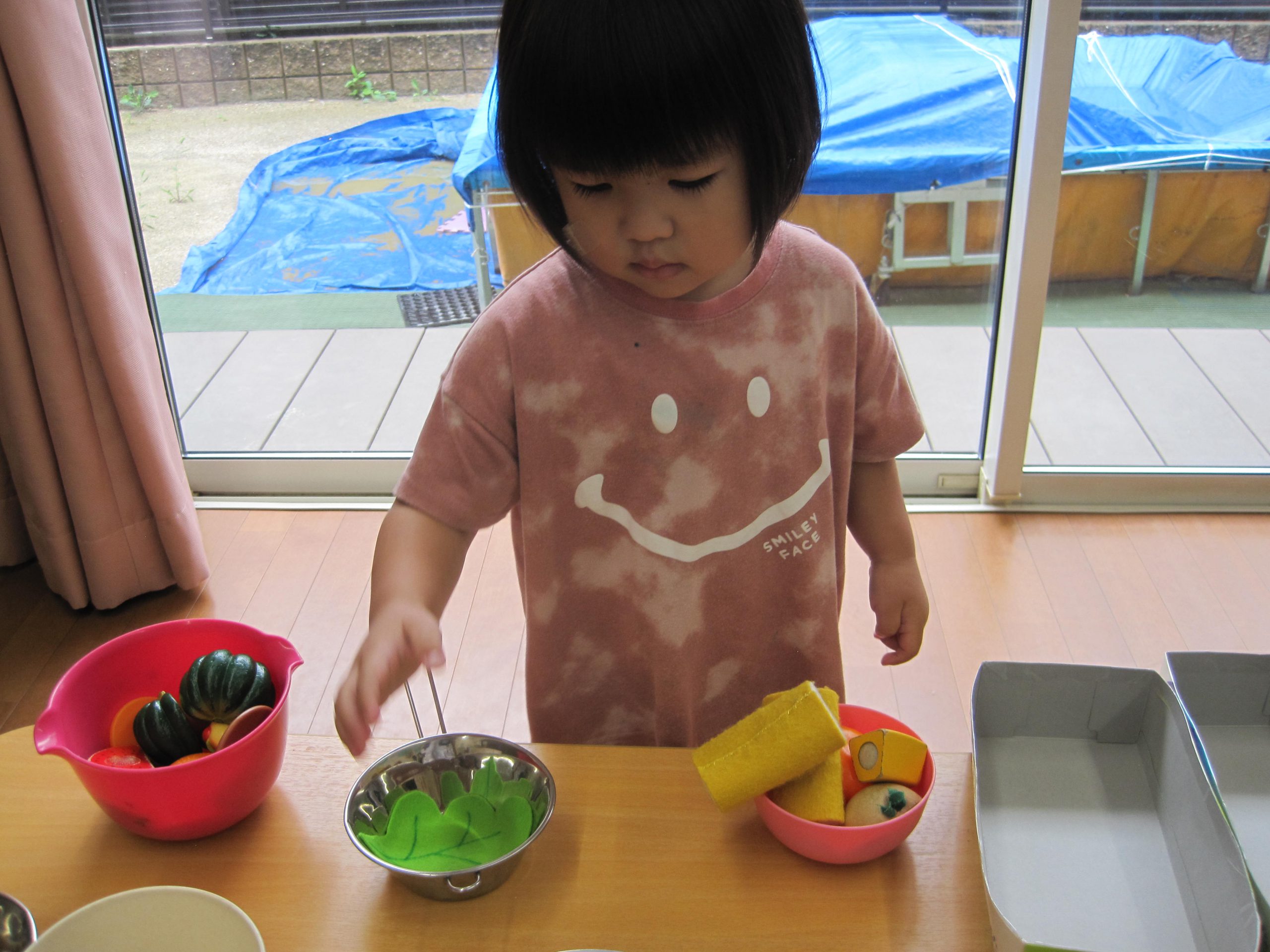 今日はおままごとの時にいつも幼児さんが遊んでいる、