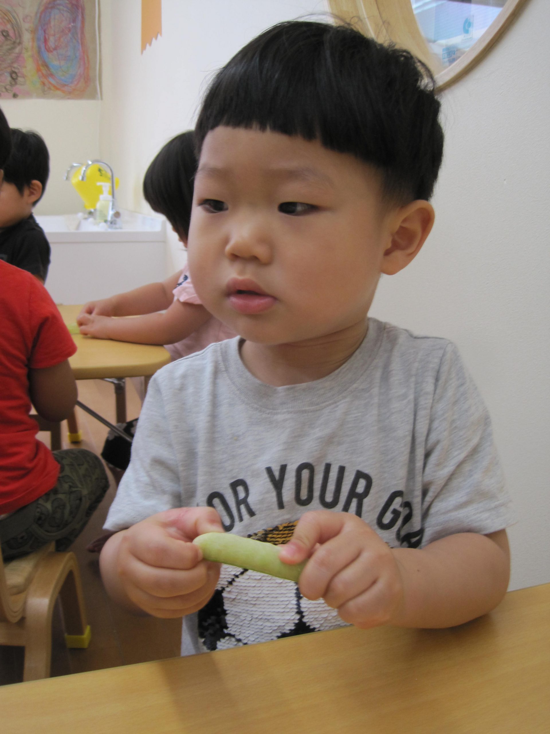 中には「やっぱりお豆は苦手~」の反応の子もいましたが