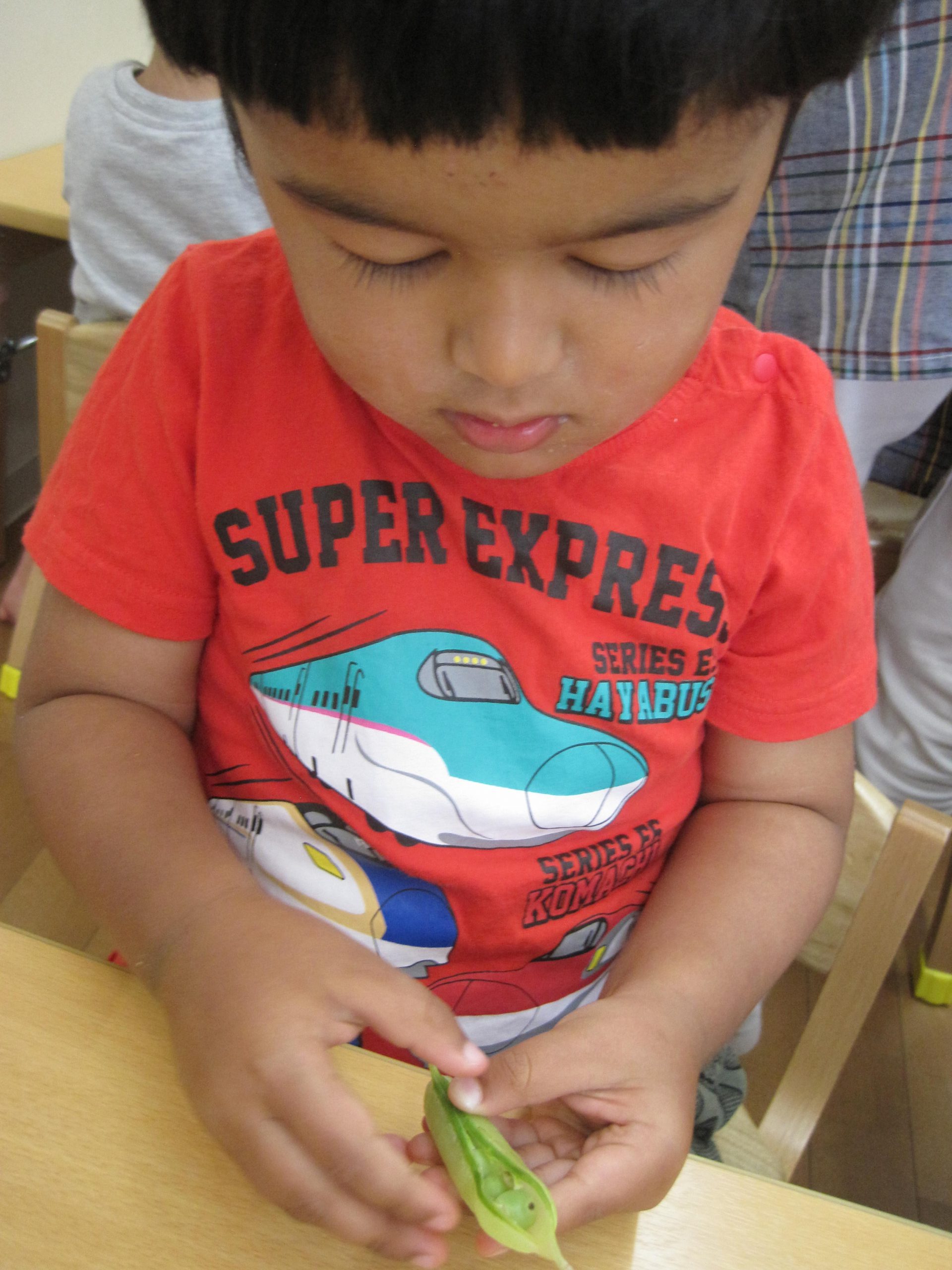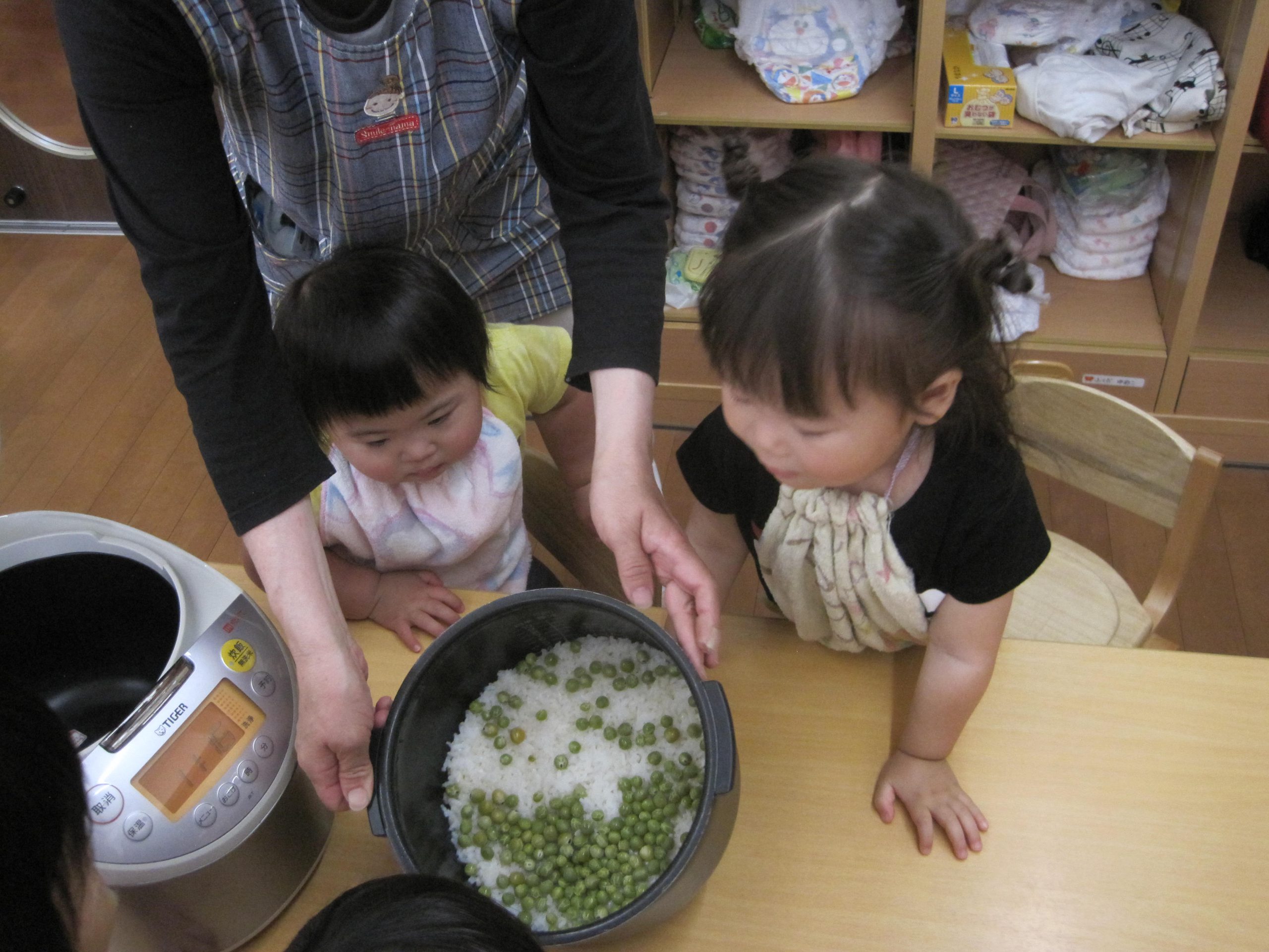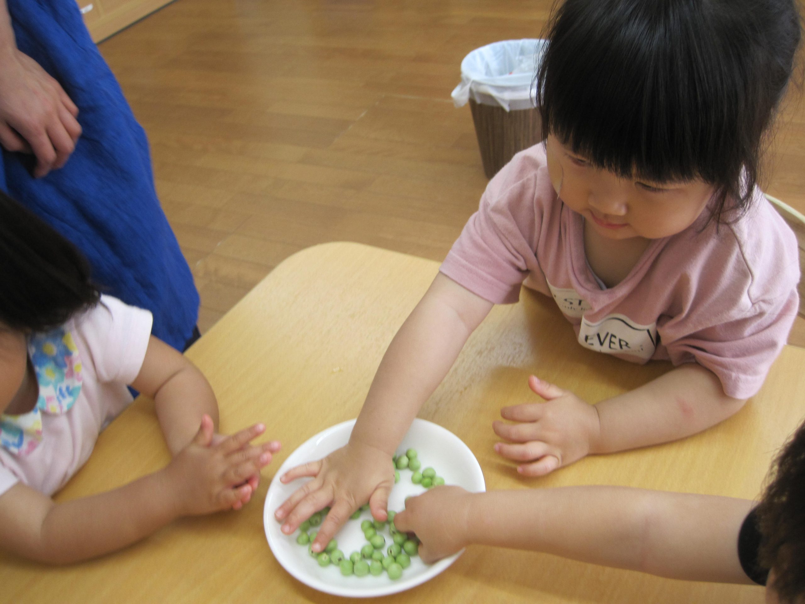 「みんなが剥いてくれたお豆だよ~」と声をかけると