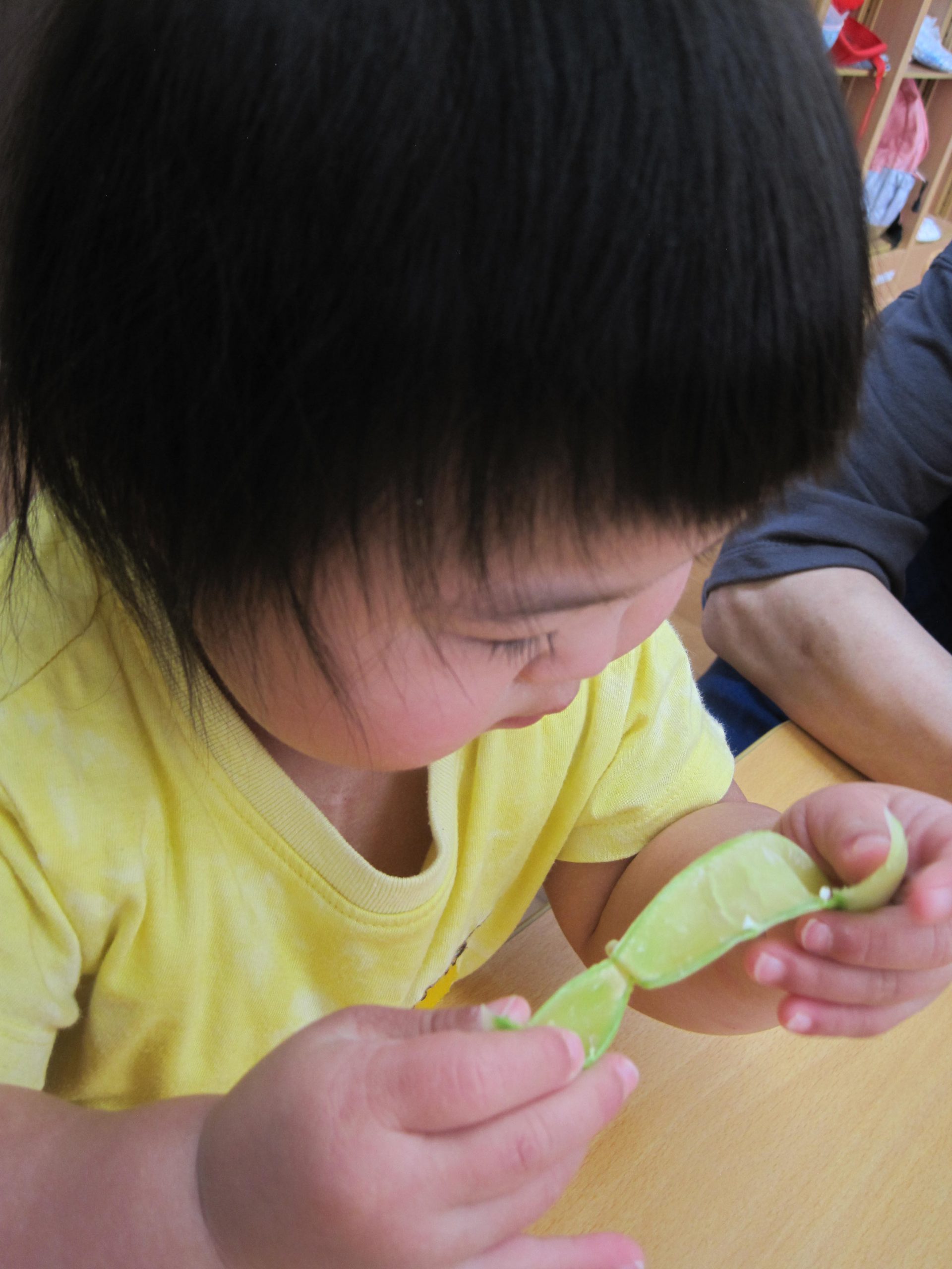 お豆の皮むきに挑戦☆ミ