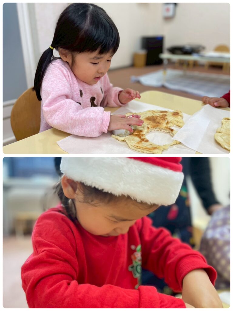 おやつには先生たちが作ってくれたプレゼントのクッキーをえらんで、いただきました☺️