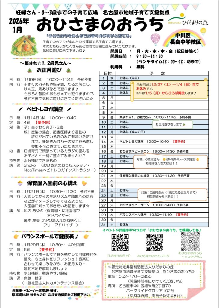 ♦おひさまのおうち♦1月のイベントカレンダー