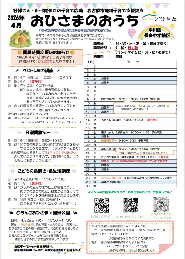 名古屋市地域子育て支援拠点おひさまのおうちです🌞