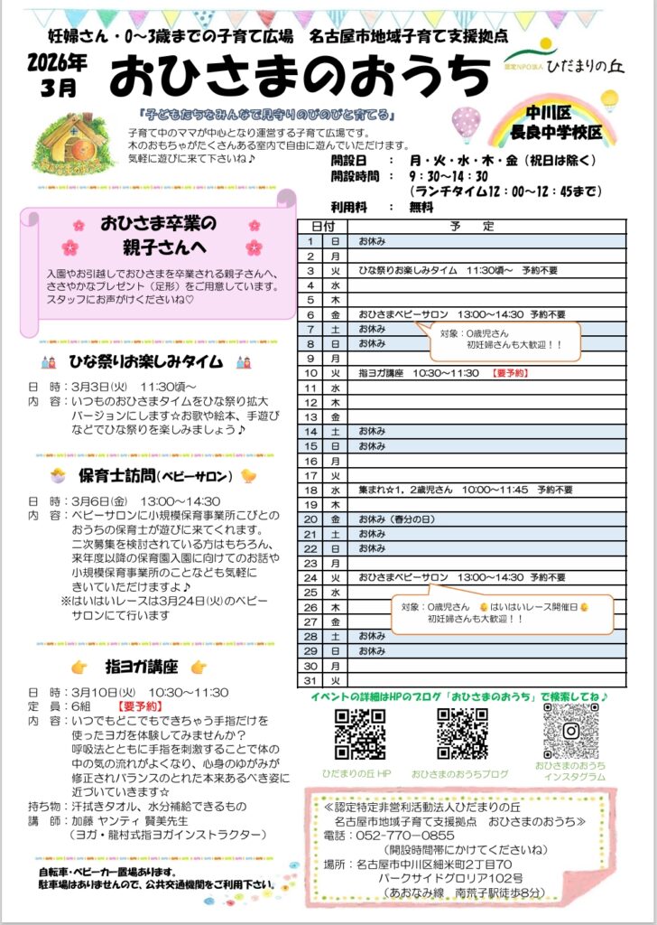♦おひさまのおうち♦3月のイベントカレンダー