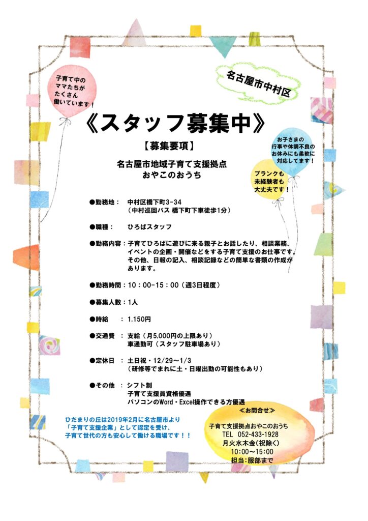 ☆おやこのおうち☆スタッフ募集のお知らせ✨